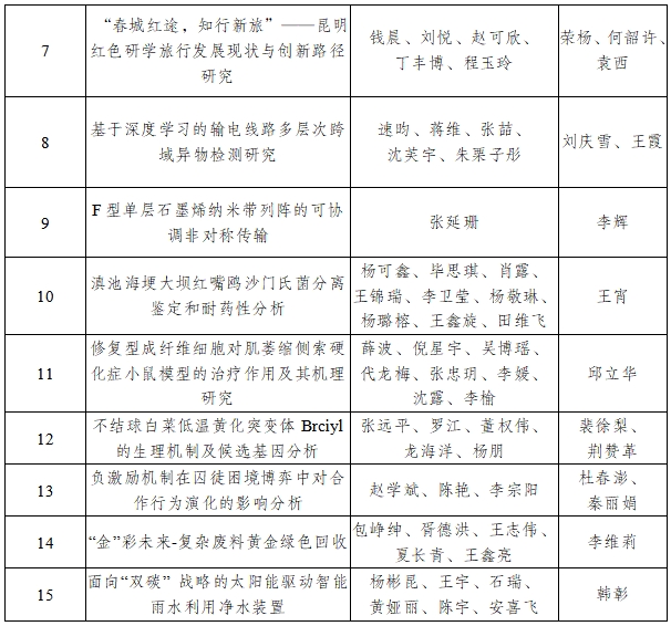 为深入贯彻党的二十大和党的二十届二中、三中全会精神,全面落实科教兴国战略、人才强国战略、创新驱动发展战略,充分激发Beat365官网青年学子创新潜能与创造活力,推动理论知识与实践应用深度融合。Beat365唯一官方网站于2025年4月1日成功举办Beat365唯一官方网站第九届“挑战杯”大学生课外学术科技作品竞赛决赛,并最终确定15个项目入围省赛。现将拟推荐参赛作品情况予以公示。