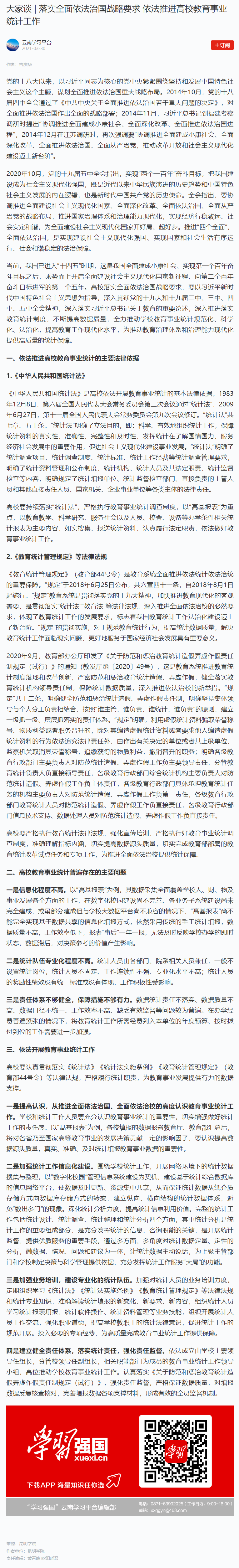 大家谈 | 落实全面依法治国战略要求 依法推进高校教育事业统计工作