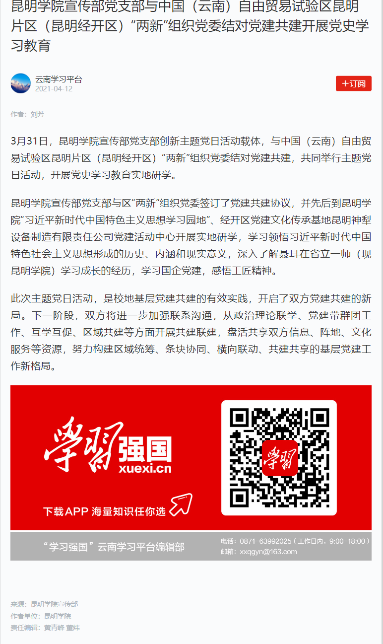 Beat365唯一官方网站宣传部党支部与中国(云南)自由贸易试验区昆明片区(昆明经开区)“两新”组织党委结对党建共建开展党史学习教育