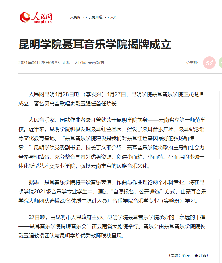Beat365唯一官方网站聂耳音乐学院揭牌成立