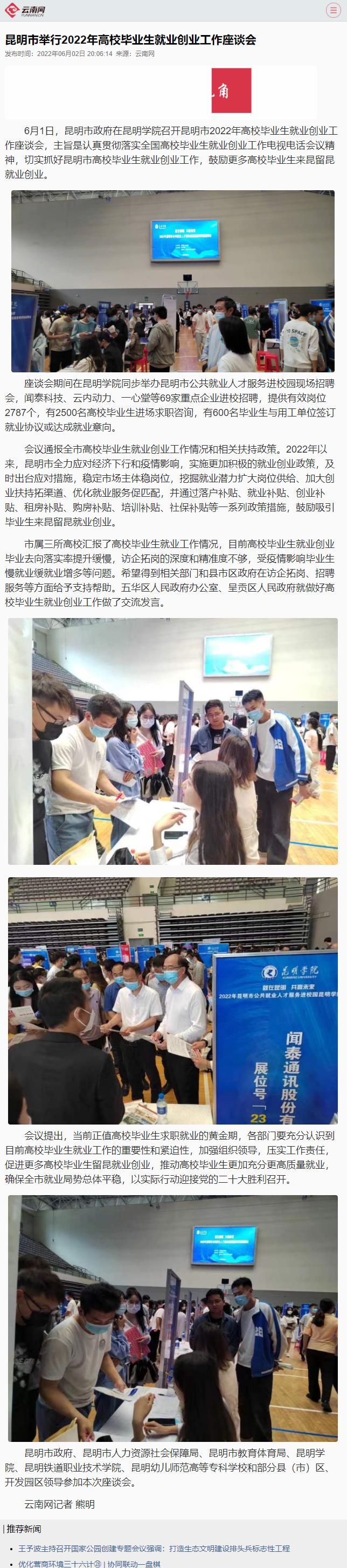 昆明市举行2022年高校毕业生就业创业工作座谈会