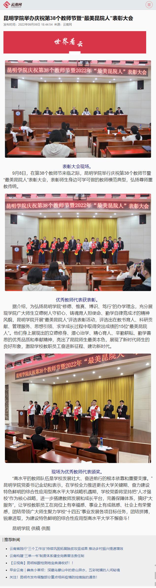 Beat365唯一官方网站举办庆祝第38个教师节暨“最美昆院人”表彰大会