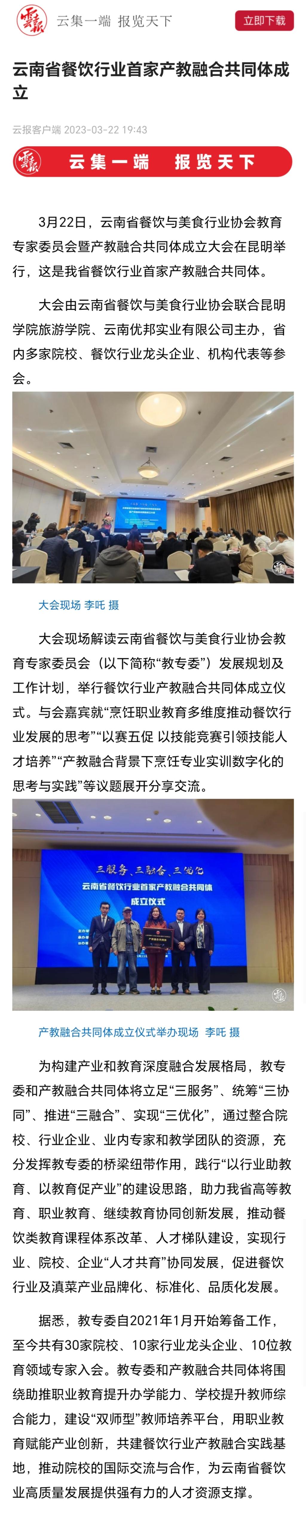 云南省餐饮行业首家产教融合共同体成立