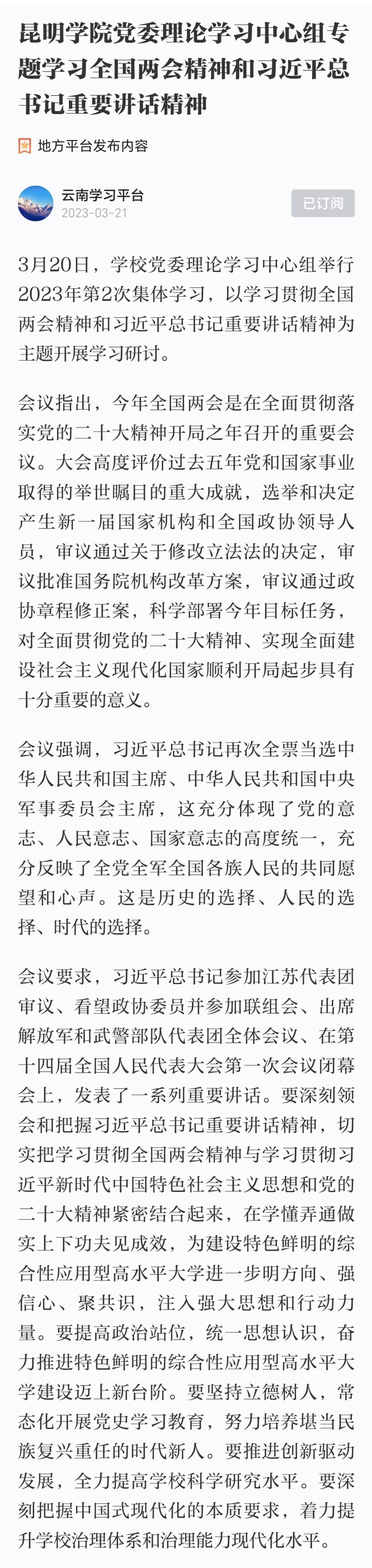 Beat365唯一官方网站党委理论学习中心组专题学习全国两会精神和习近平总书记重要讲话精神