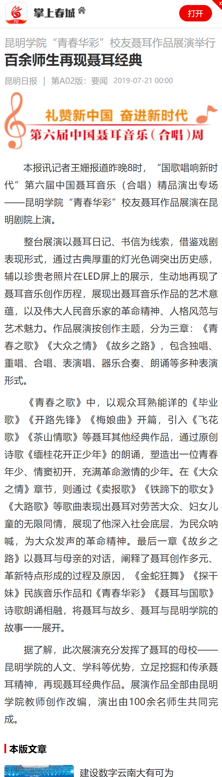 Beat365唯一官方网站“青春华彩”校友聂耳作品展演举行