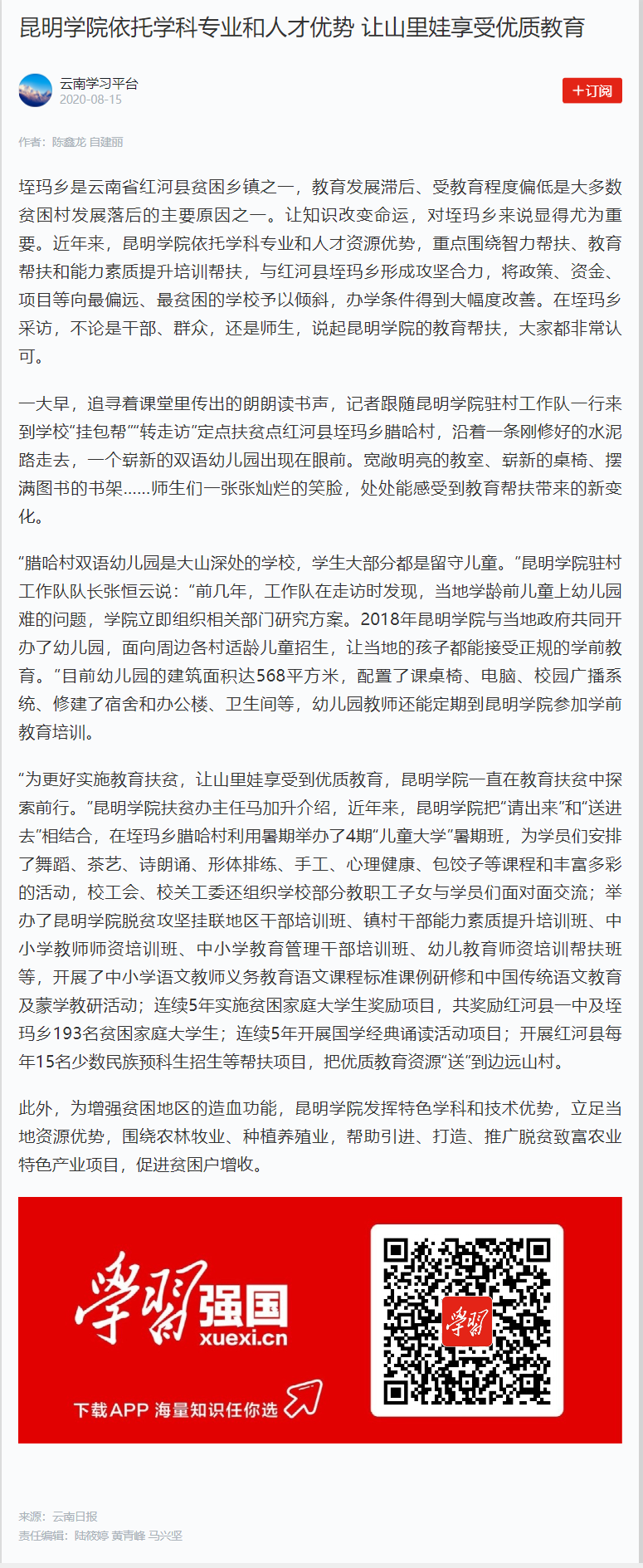 Beat365唯一官方网站依托学科专业和人才优势 让山里娃享受优质教育
