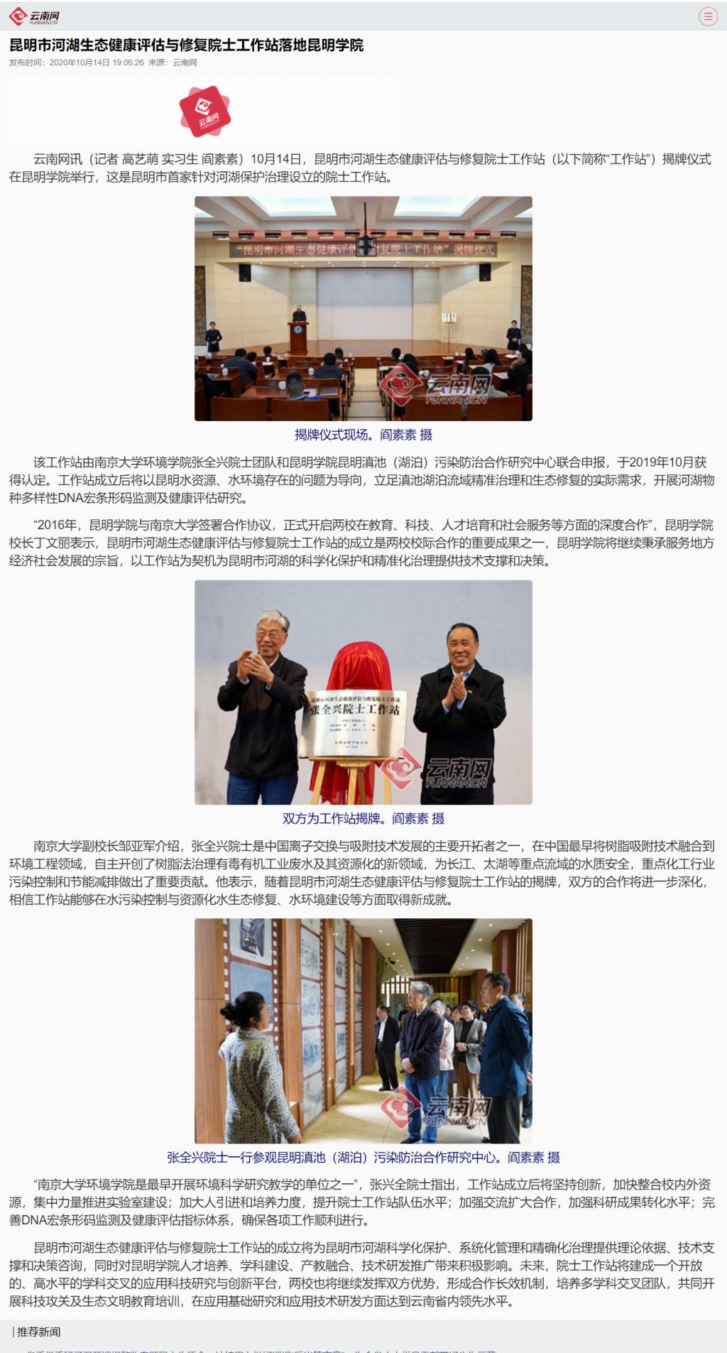 昆明市河湖生态健康评估与修复院士工作站落地Beat365唯一官方网站