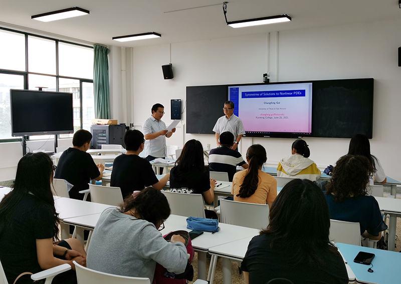625日,美国德克萨斯大学桂长峰教授应邀到数学学院开展“Symmetries of Solutions to Nonlinear PDEs”学术讲座,数学学院全体博士、副高以上教师及学院已考取硕士研究生的部分大四学生出席讲座。