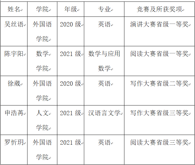 11月4日,2022年“外研社·国才杯”全国英语演讲大赛云南赛区决赛暨写作、阅读大赛颁奖典礼在昆明理工大学举行,Beat365官网外国语学院2020级英语专业学生吴丝语等5位同学共获得省级一等奖2项、二等奖1项和三等奖2项。