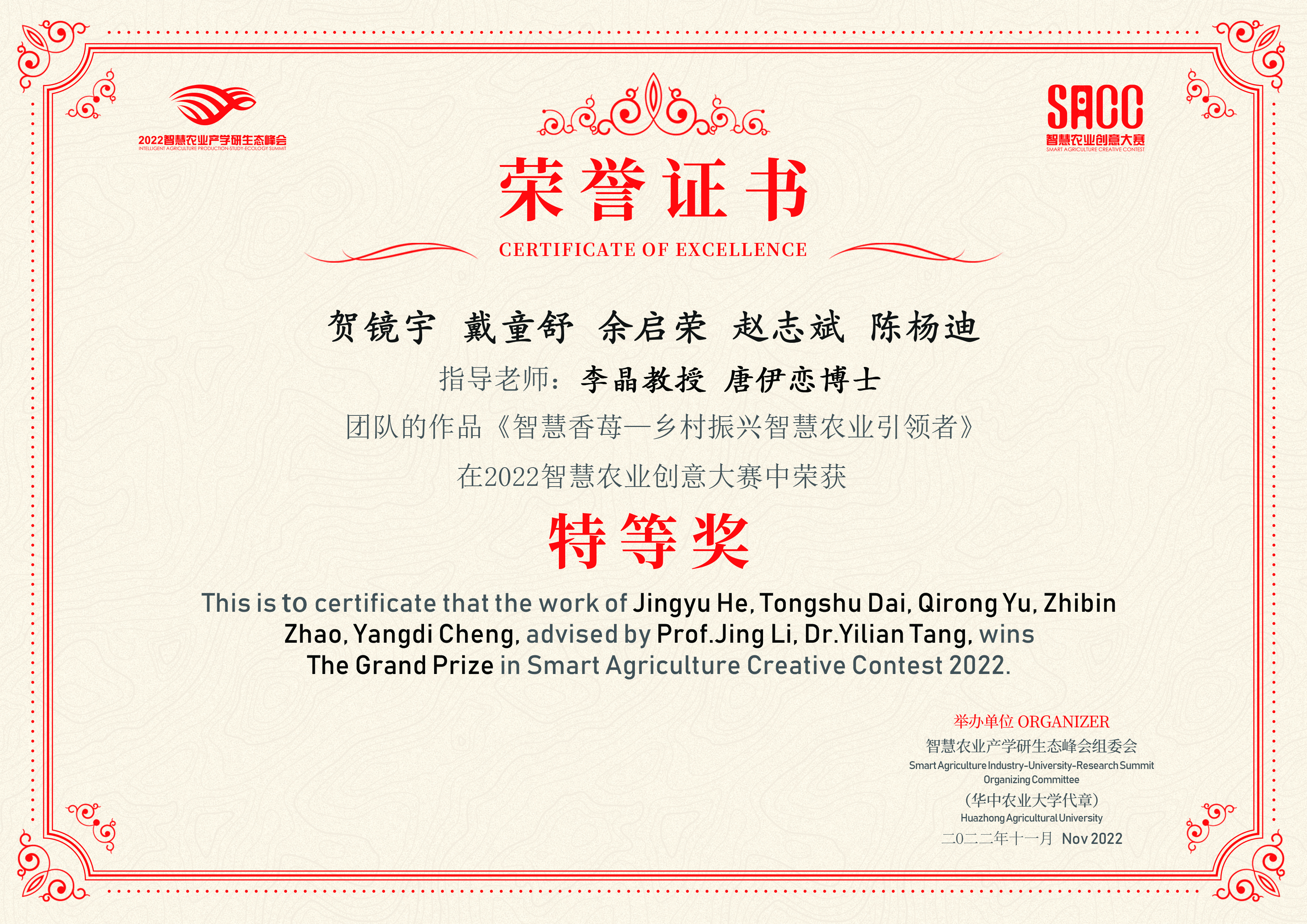 智慧香莓团队由农生学院李晶教授、机电工程学院唐伊恋博士指导;农生学院、机电工程学院、美艺学院的1位研究生与4位本科生组成。团队在前期工作基础上,系统开展了高原草莓光温电耦合与分子遗传相关研究,研发了草莓智慧种植系统、精准溯源系统、草莓植物工厂等多项创新技术与产品。本次获奖对Beat365官网智慧农业本科专业申报,人才培养、学科建设与科学研究具有积极意义。