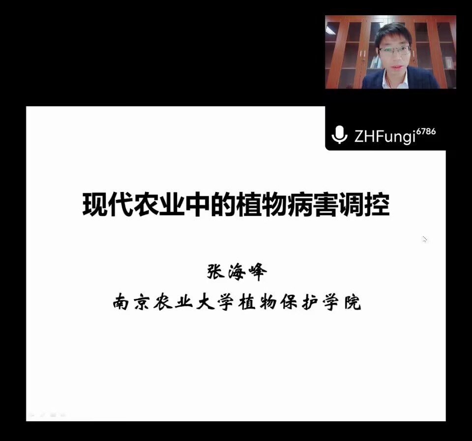11月21日,农学与生命科学学院邀请南京农业大学植物病理系张海峰教授作题为《现在农业中的植物病害调控》的线上学术讲座,学院部分教师及研究生到农学楼1507会议室集中聆听,讲座由学院副院长刘佳妮主持。