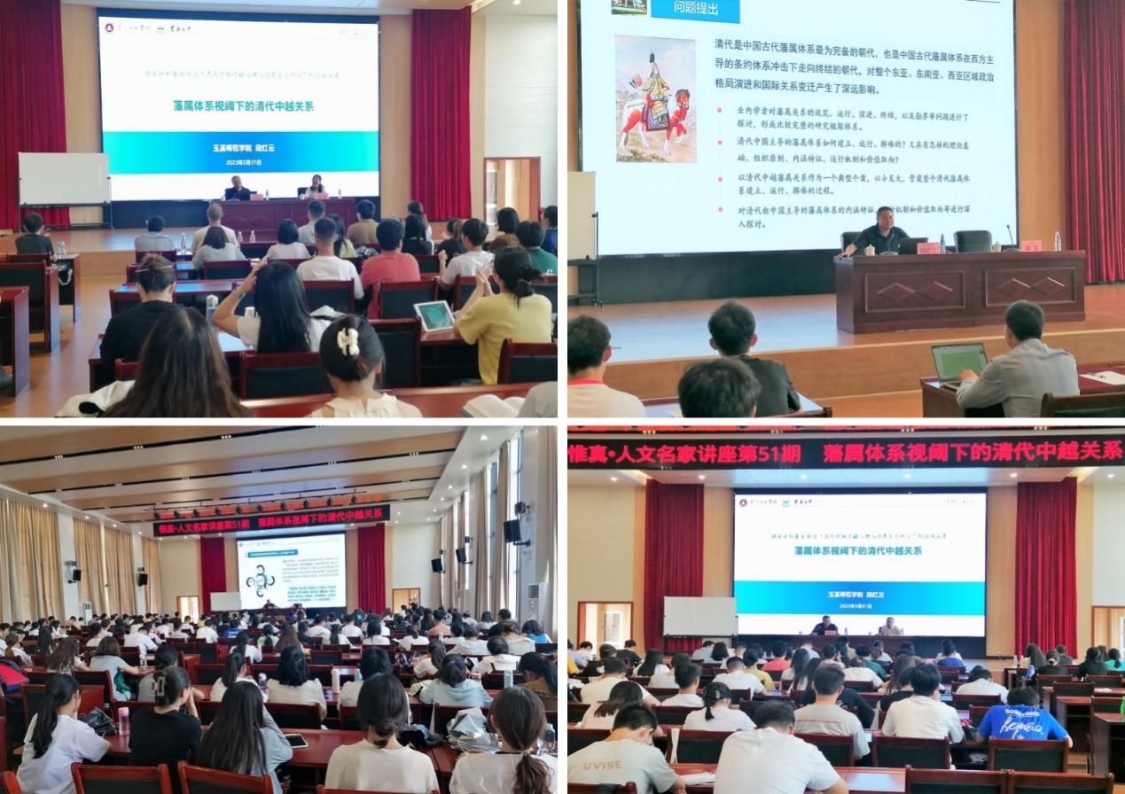 5月31日下午,人文学院“惟真·人文名家讲座”在博学报告厅举行,玉溪师范学院校长、云南大学博士生导师段红云教授作为主讲嘉宾,为师生作题为《落属体系视阈下的清代中越关系》的学术讲座。学校党委副书记王文成出席讲座。人文学院院长邓瑶教授主持。
