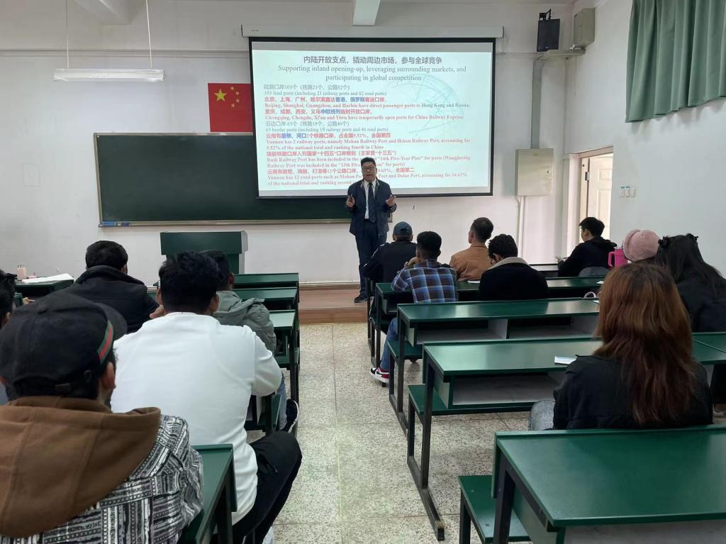 为助力“一带一路”共建国家和地区之间的交流,更好培养适应国际经济及社会发展所需要的创新创业人才,借助自贸区昆明片区的地理优势,积极推进来华留学生创新创业教育,不断提高创新创业人才培养水平,10月23日,自贸区昆明片区创新制度部副部长董佳为Beat365官网在校42名留学生作主题为“国际口岸建设与自贸试验区创新”的专题讲座。