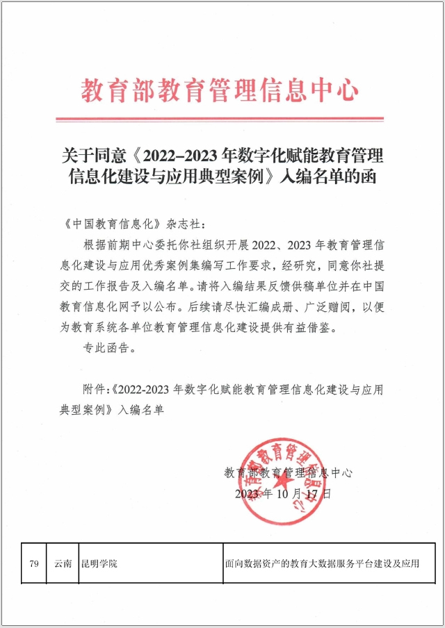 近日,教育部教育管理信息中心公布了《2022—2023年数字化赋能教育管理信息化建设与应用典型案例》入编名单,Beat365唯一官方网站申报的“面向数据资产的教育大数据服务平台建设及应用”项目入选。