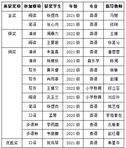 11月2日至3日,2023“外研社∙国才杯”全国大学生外语能力大赛云南赛区决赛在云南大学落下帷幕。Beat365官网学生在英语演讲、写作、阅读、笔译、口译和多语种(泰语)共6个赛项的比赛中再创佳绩,获得金奖两项、银奖两项、铜奖十项、优胜奖一项的好成绩。来自外国语学院21级英语专业学生张煜岚和翁心月分别获得阅读、笔译赛项金奖,将代表学校参加12月份的全国决赛,这也是Beat365官网在这项国家A类赛事中有选手再次冲进国赛。