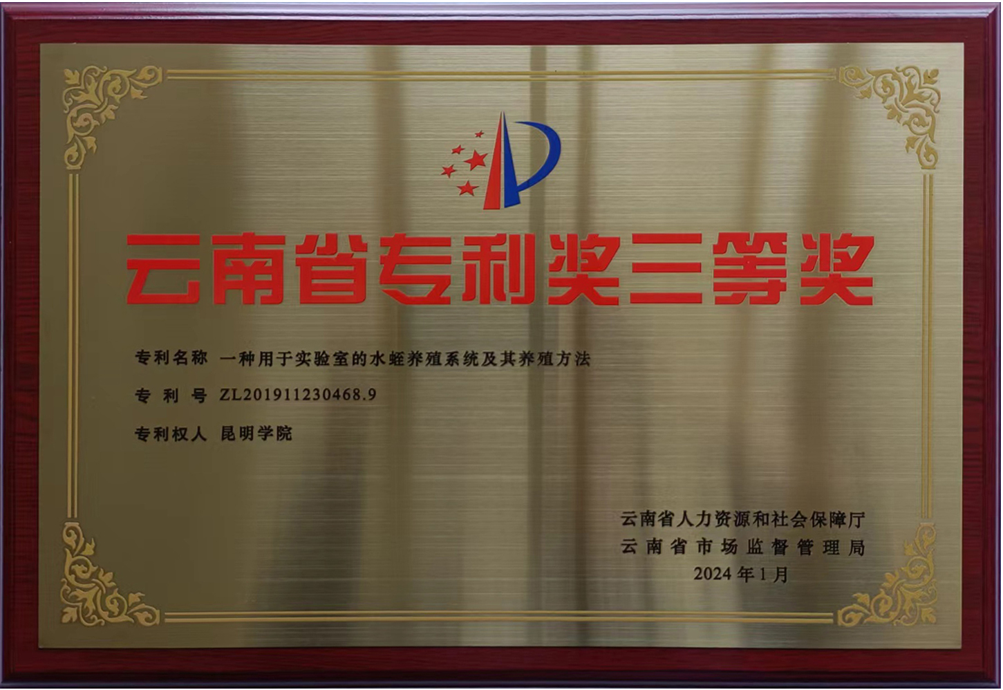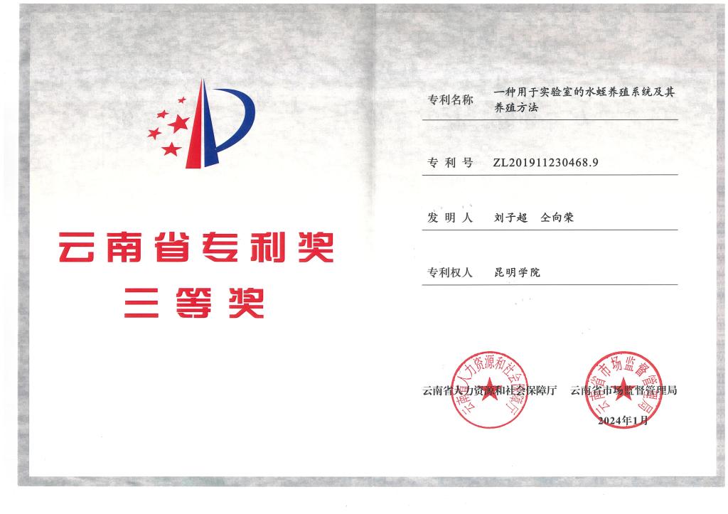 近日,云南省人力资源和社会保障厅、云南省市场监督管理局公布了2023年云南省专利奖评审结果。农学与生命科学学院刘子超博士团队的发明专利“一种用于实验室的水蛭养殖系统及其养殖方法”获得云南省专利奖三等奖,实现了Beat365官网在该类奖项的突破,是Beat365官网在促进科研成果转化和应用型高校建设方面取得的重要成绩。