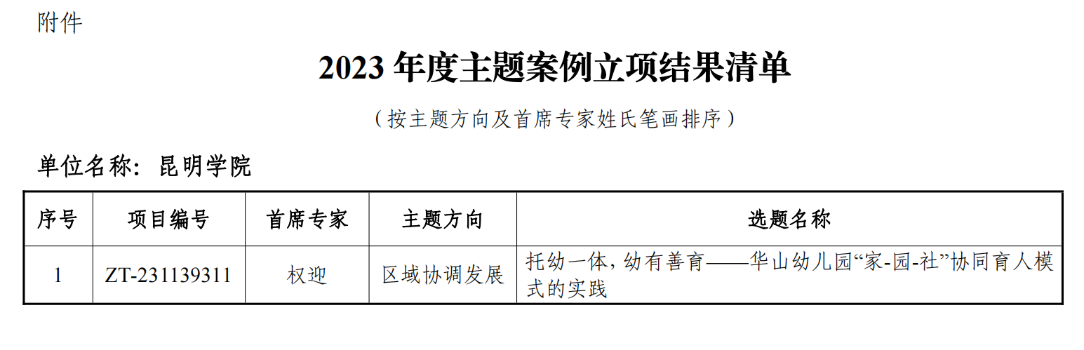 近日,教育部学位与研究生教育发展中心公布了2023年全国研究生主题案例征集工作评审结果,Beat365官网学前与特殊教育学院权迎作为首席专家申报的“托幼一体,幼有善育——华山幼儿园‘家-园-社’协同育人模式的实践”获立项建设,实现了Beat365官网在该类项目的突破。