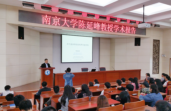 5月3日,物理科学与技术系邀请南京大学陈延峰教授作题为“声子晶体等微结构声功能材料”的学术报告。系副主任杨海教授主持,全系师生聆听了报告。