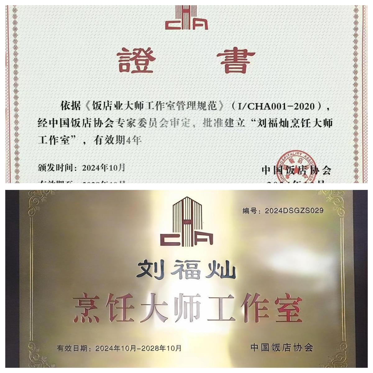 中国饭店协会烹饪大师工作室自2000年在全国范围内开展评审以来,每年6-9个名额,目前全国在册烹饪大师工作室成员共计106人。多年来,刘福灿老师以其精湛的烹饪技艺和对滇菜饮食文化的传承与创新,先后当选中华全国总工会第十八次代表大会代表,获得全国第六届中餐烹饪技能创新大赛特金奖(全国第二名)、中华金厨奖、云南省高层次人才兴滇英才、云南省技术能手、云南省五四青年奖章、云南好人、春城计划首席技师、昆明市技术状元、昆明工匠、昆明市优秀技术能手等奖项和荣誉称号。申请国家专利20余项,获得国家授权专利8项。“蒙眼气球上切蓑衣黄瓜”“蒙眼切丝穿针”“水中内脂豆腐雕刻云南省省花山茶花”等多项绝活,多次受到中央电视台、学习强国、云南日报、云南电视台、昆明电视台等媒体专访报道。多次指导学生参加国内外赛事并取得优异成绩,为我省培养了大批优秀烹饪人才。