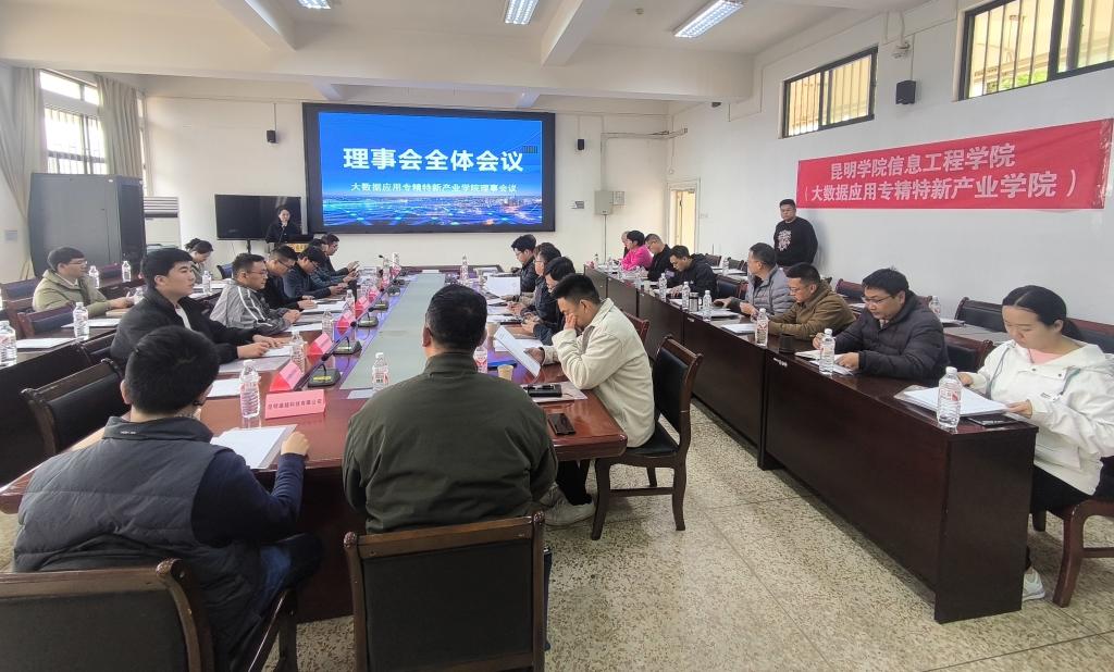 教务处副处长陈泽斌代表致辞。产业学院执行院长何俊向理事会汇报产业学院建设情况,提出了产业学院高质量发展目标和推进校政企行合作共建促进产教研深度融合发展理念。信息工程学院全体领导班子成员、教职工与共建单位、合作企业就产业学院2025年度发展规划、人才培养方案、校企合作深化、科技成果转化等进行了探讨交流。