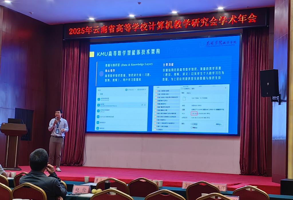 大会期间,数学学院李川老师受邀作“KMU高数智慧伴学”案例分享。该系统涵盖高等数学的“知识点预习与复习”“试题答疑”和“期末考试复习”等模块,并提供智能学伴助学服务,有效提升了学生的学习体验和效率。