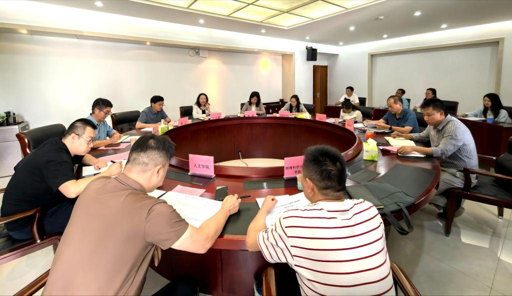 研究生部主任王定康对标《新增博士学位授予单位申请基本条件》,从生师比、科研经费、生均收入等核心指标作全校达标分析;物理科学与技术学院、人文学院、农学与生命科学学院院长依次汇报本学科基础数据、建设成效、短板差距及下一步举措。