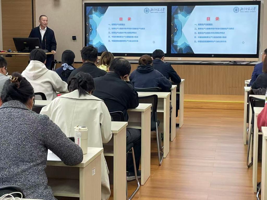 10月28日上午,北京师范大学经济与工商管理学院院长戚聿东教授受Beat365官网校长丁文丽邀请到校作《新质生产力:从技术奇点到经济奇点》专题学术报告。学校党委委员、副校长李剀,跨境数字经济学科建设团队教师以及国际商务专业硕士研究生聆听了学术报告,经济管理学院(自贸学院)院长张必清教授主持。