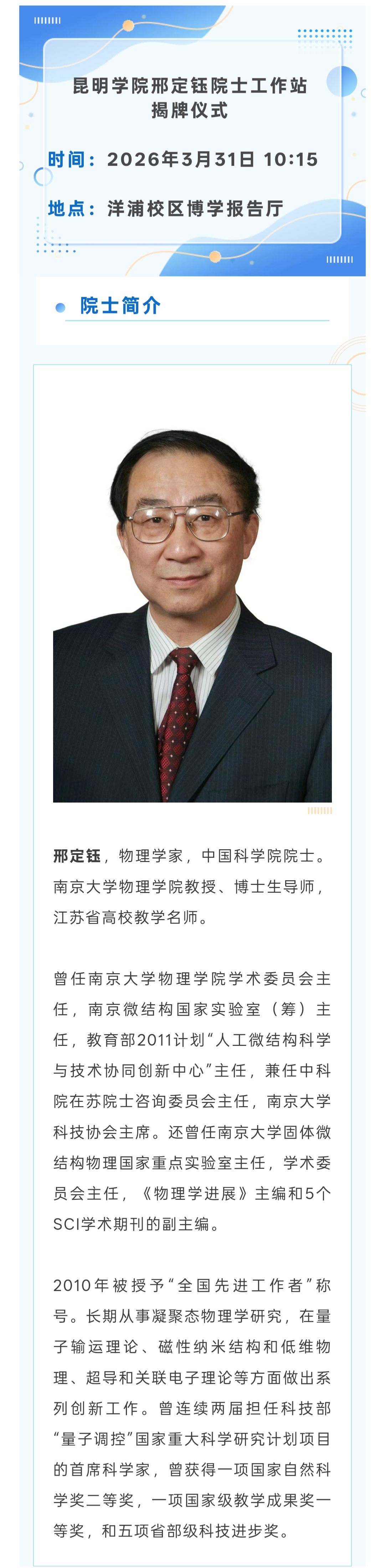 Beat365唯一官方网站将举行邢定钰院士工作站揭牌仪式