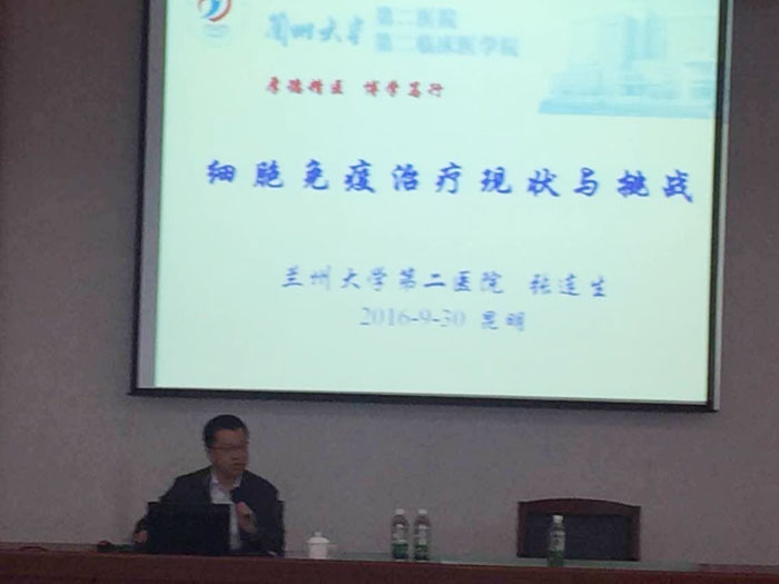 9月30日,兰州大学医学院教授,兰州大学第二医院院长助理、血液病研究所所长、血液科主任,兰州大学第二医院定西医院院长,博士生导师张连生教授应医学院余珊院长邀请,到Beat365官网作了题为“再谈细胞免疫治疗”的专题讲座。本次讲座由科研处主办,医学院承办。医学院、校医院、附属医院以及其他院系师生共计200余人参加了本次讲座。