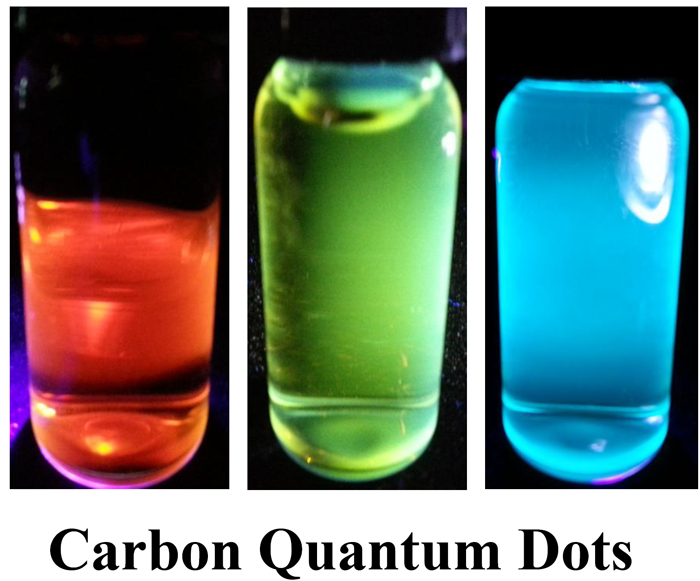 张晋教授简介:张晋教授于1998年获四川大学工学博士学位,2000年3月至2001年8月在韩国国立全北大学做博士后,参与完成韩国科学与工程基金重大项目“The Brain Korea 21 Projects”之一:“谐振隧道发光二极管研究”。近年来主持完成了三项国家自然科学基金项目,现主持国家自然科学基金项目“金微栅/石墨烯量子点的制备及其光电性能研究”和云南省基础研究计划重大项目“高亮度石墨烯量子点发光二极管器件及应用基础研究”,现已探索出红、绿、蓝三基色荧光碳量子点(见下图)的可控制备技术,目前准备与云南省高校有机光电子材料与器件重点实验室合作研制碳量子点发光二极管。