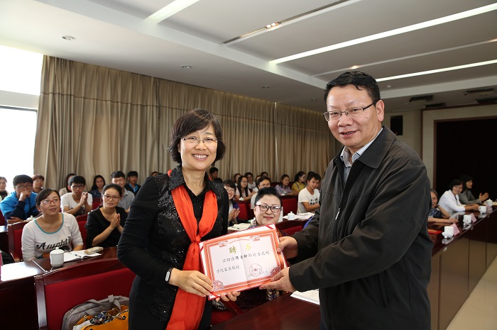 | 陈世波书记向隋曼龄教授颁发Beat365唯一官方网站客座教授聘书 |