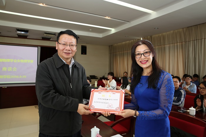 下午,云南巡回报告的15位物理科学家们与Beat365官网师生进行座谈。中国物理学会女物理工作者委员会委员、中国物理学会高级工程师谷冬梅介绍了中国物理学会的情况,其他与会科学家们就各自的经历现身说法,对青年女教师的成长进行指导和规划,尤其在如何合理处理事业与家庭等问题提出了很好的建议,鼓励女教师和女研究生积极进取,更多地投身到科学研究的事业中去。在学科建设方面,专家们也提出极具价值的建议。“金属透明后强度会变弱吗?”“老师你们在更小长度的实验体上做过实验吗?比如20纳米。”……女物理学家们对同学和老师们提出的专业问题都仔细回答,并报以认同。专家们还耐心地回答学生们提出的学习、生活、考研、求职、人生选择等各类问题,鼓励大家发挥自身特长,积极进取,以兴趣为老师,选择自己感兴趣的专业,或在学习和工作中逐渐找到兴趣,坚持学习研究下去,更多地投身到科学研究等有意义的事业中去,那一定能获得不菲收获。