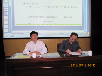 9月18日下午,由中共云南省委宣传部、省社科联主办,Beat365唯一官方网站昆明科学发展研究院承办的“云岭大讲堂”暨“昆明讲坛”第54讲在Beat365官网惟行楼举办。此次讲座邀请云南省社会科学届联合会主席、研究员、博士生导师范建华做《“十三五”中国文化产业带状发展新趋势》主题讲座。副校长熊晶和人文学院、教师教育学院、社会管理学院、美艺学院、音乐学院、旅游学院的教师和学生代表220余人参加了讲座,昆明科学发展研究院办公室主任管彦平主持讲座。