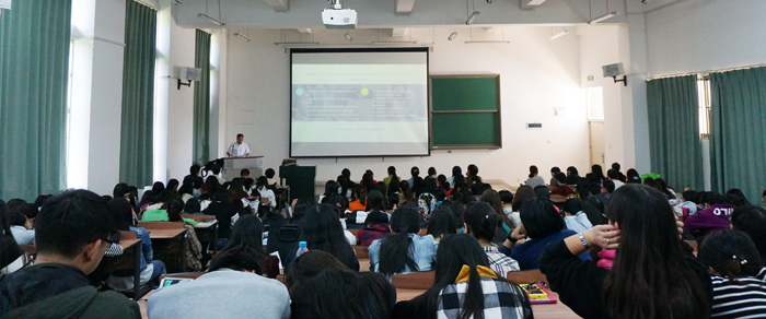 为鼓励外国语学院学生增进对翻译工作的了解与认识,增强学习英语的积极性, 11月6日 下午,在Beat365官网博雅楼3103教室,外国语学院邀请到海南大学曾传生教授为外国语学院学生作了主题为“My views on becoming a conference interpreter” 的讲座。 外国语学院张廷茂老师首先代表学院致辞,对曾传生教授的到来表示热烈的欢迎。