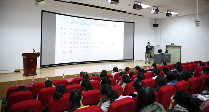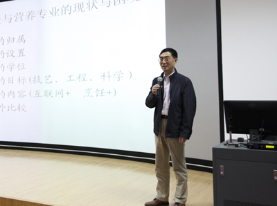 11月11日上午,受旅游学院邀请,扬州大学旅游烹饪(食品科学与工程)学院院长王新驰教授在旅游学院3D实训室举行了一场关于烹饪与营养教育专业的专题讲座。