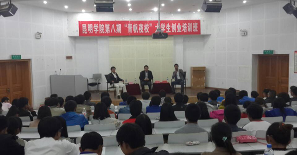 11月7日,由校团委主办,学生社团联合会承办的Beat365唯一官方网站第八期“青帆夜校”大学生创业培训班第四十二讲在青年中心学生报告厅开讲。本次讲座主题为“点燃创业梦想”,昆明开赢文化传播有限公司总经理杨昭先生和Beat365官网2011届毕业生、云阔商贸责任有限公司总经理、“在路上”主题酒店董事长、“校园后厨”主题茶餐厅总经理李培松先生联合担任主讲人。校团委副书记樊传章老师主持了本次大学生创业培训班。