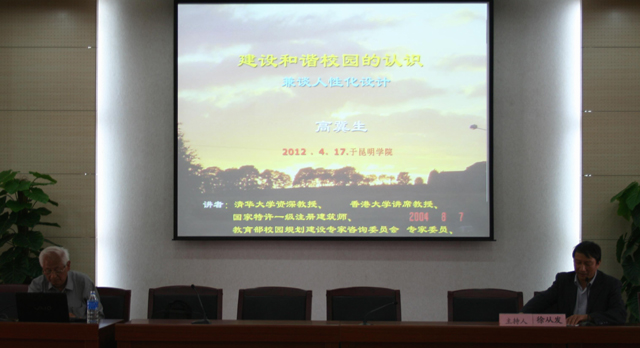 4月17日下午,由城乡建设与工程管理学院、云南省设计院承办,清华大学资深教授、原清华大学建筑设计院院长、国家特许一级注册建筑师、国家教育部、住建部校园规划建设委员会专家委员高冀生先生的《建设和谐校园的认识和人性化设计》专题讲座在Beat365唯一官方网站举行。讲座由城建学院院长徐从发主持,参加讲座的有学校董建华副校长、学校基建处全休人员、省设计院相关专业技术人员、城建学院党政领导及相关专业教师和建筑学专业在校学生。