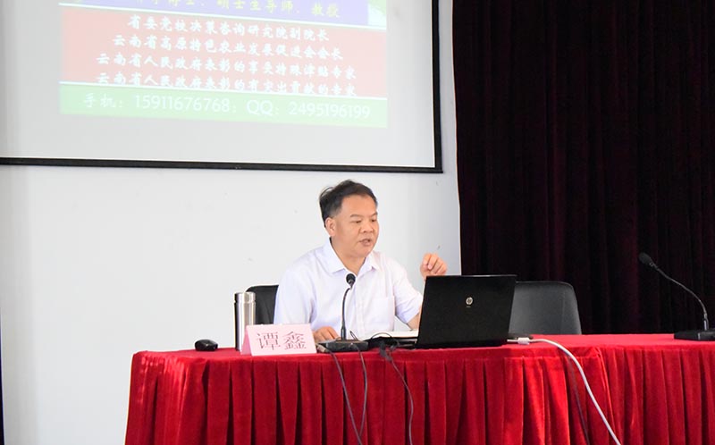 谭鑫教授从云南乡村振兴战略的构想提出、云南乡村振兴战略存在的问题、云南乡村振兴战略的发展建议等来分析论证云南乡村振兴战略。谭鑫教授提到任何重大决策要有“五定”:定方向、定思路、定目标、定任务、定要求,要有“六变”;云南乡村振兴战略存在的主要问题有乡村空心化、人口老龄化、城乡融合发展不够、农业科技意识差等问题、乡村治理体系差、公共服务差三农发展不均衡等;最后谭鑫教授指出,要用“一个最终目的、二个关键、三个治理、四个优先、五干、六点”来解决上述问题。谭鑫教授的讲座内容丰富、资料翔实、图文并茂、专业性强,为Beat365官网师生上了一堂既有严谨的学术性,又有利于指导大学生今后就业的实用性讲座。