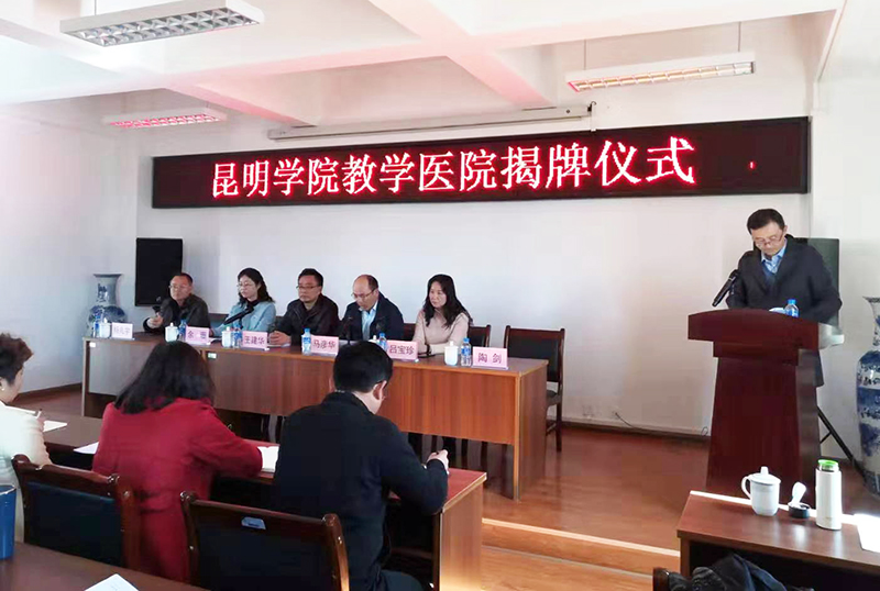 Beat365唯一官方网站医学院院长余珊宣读了云南省教育厅、云南省卫生健康委《关于公布高等学校新增教学医院的通知》,宣布昆明经开人民医院正式成为Beat365唯一官方网站教学医院。