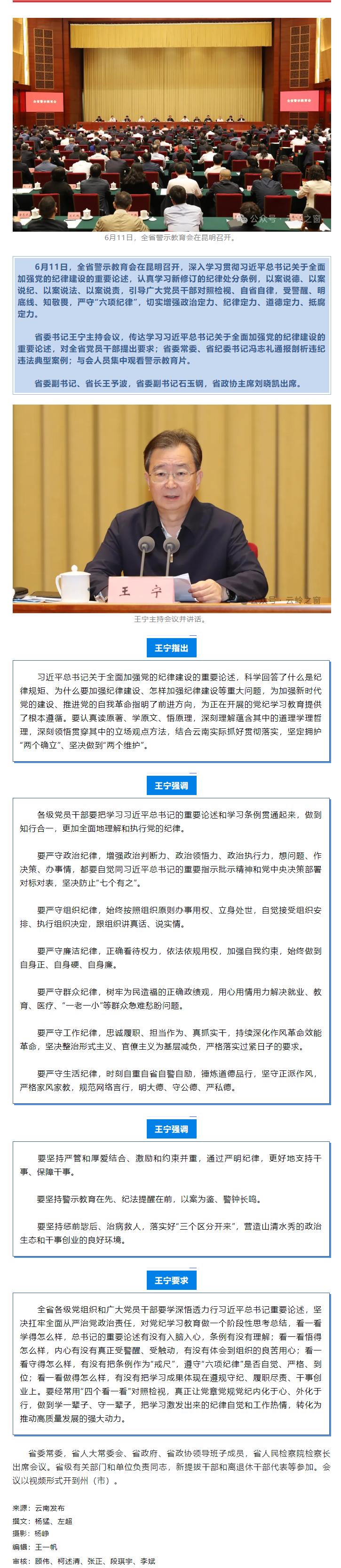 全省警示教育会召开 受警醒 明底线 知敬畏 严守“六项纪律” 做到知行合一 王宁主持并讲话 王予波石玉钢刘晓凯出席