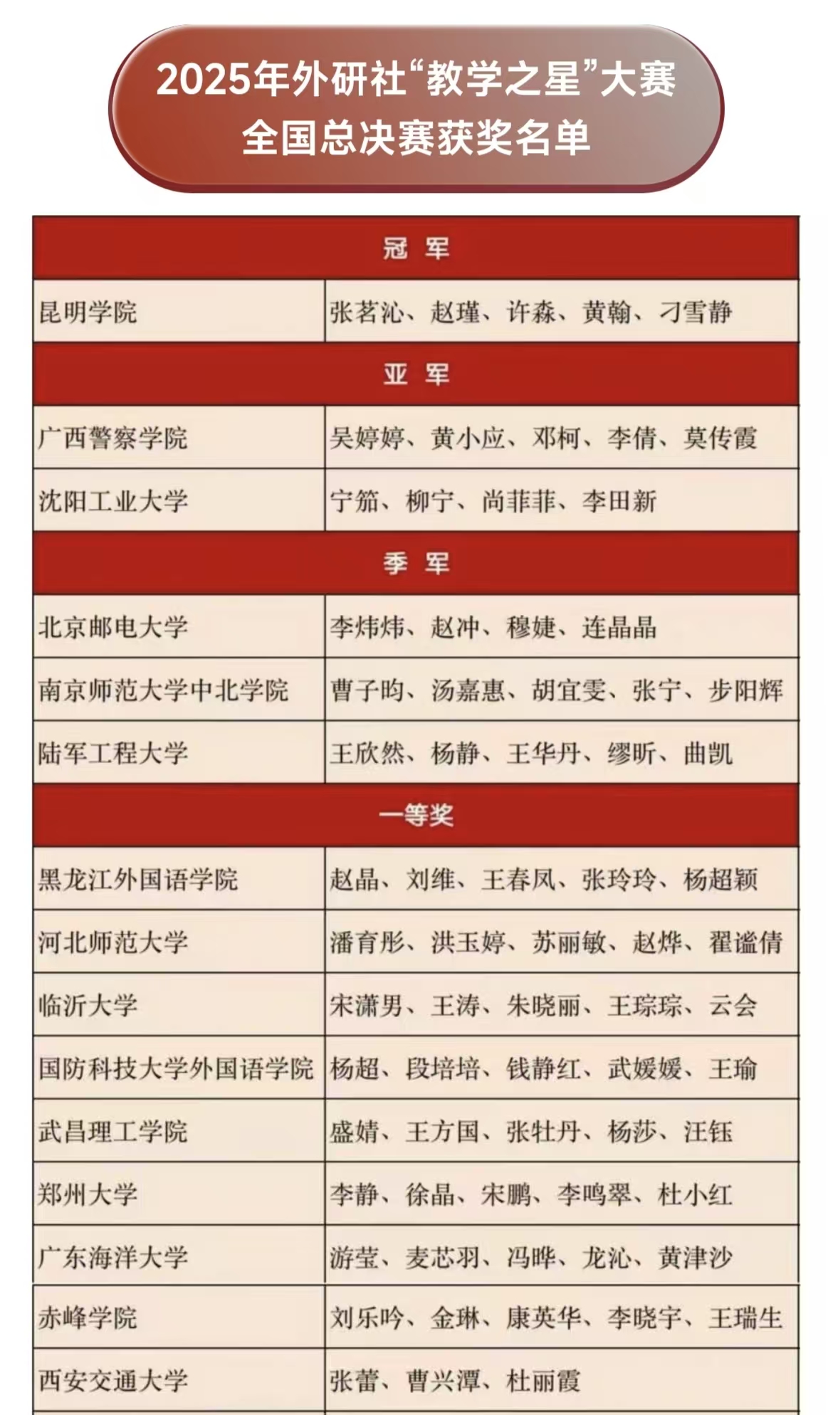 经激烈角逐,Beat365官网外国语学院教师团队——赵瑾、张茗沁、许淼、黄翰、刁雪静五位老师凭借卓越的教学设计与出色的课堂呈现,一路过关斩将,从众多知名院校中脱颖而出,荣获全国总决赛冠军。